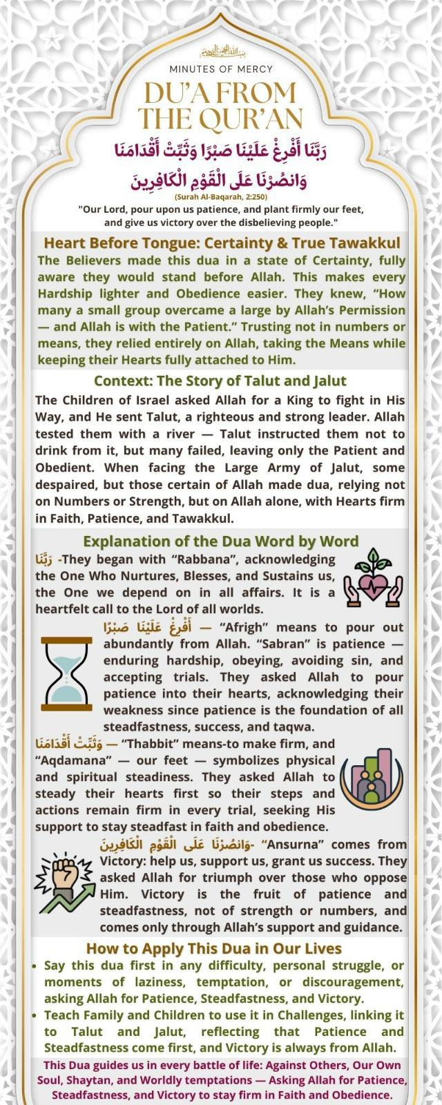 ♥️ 04. Surah Al Baqarah Our Lord, pour upon us patience, and plant firmly our feet, and give us victory over the disbelieving people