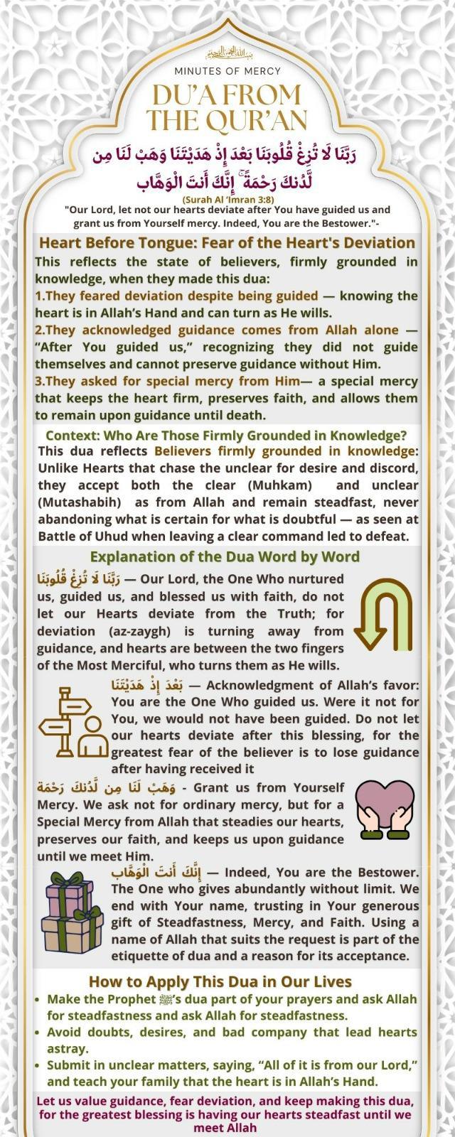 ♥️ 06. Surah Aal Imraan: Our Lord, let not our hearts deviate after You have guided us and grant us from Yourself mercy. Indeed, You are the Bestower