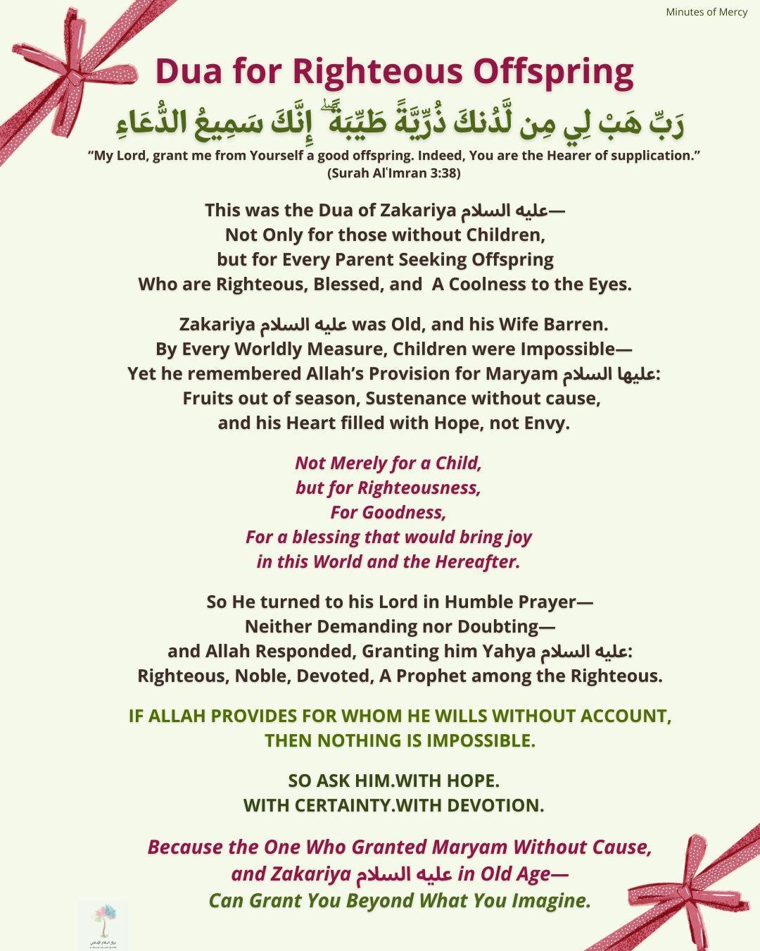♥️ 08. Surah Aal Imraan: My Lord, grant me from Yourself a good offspring. Indeed, You are the Hearer of supplicatio